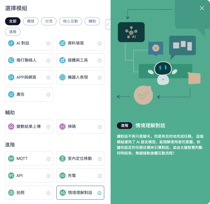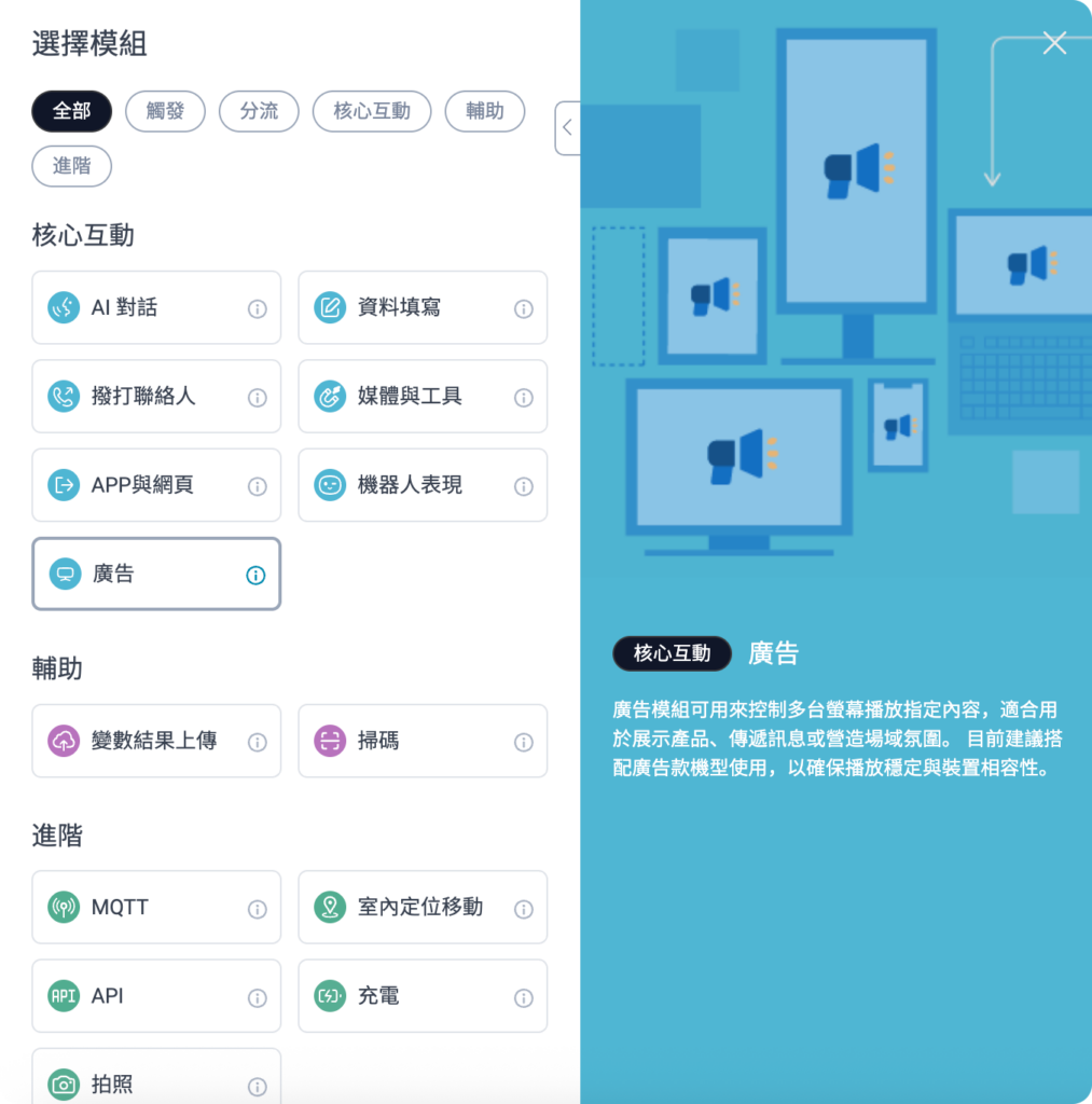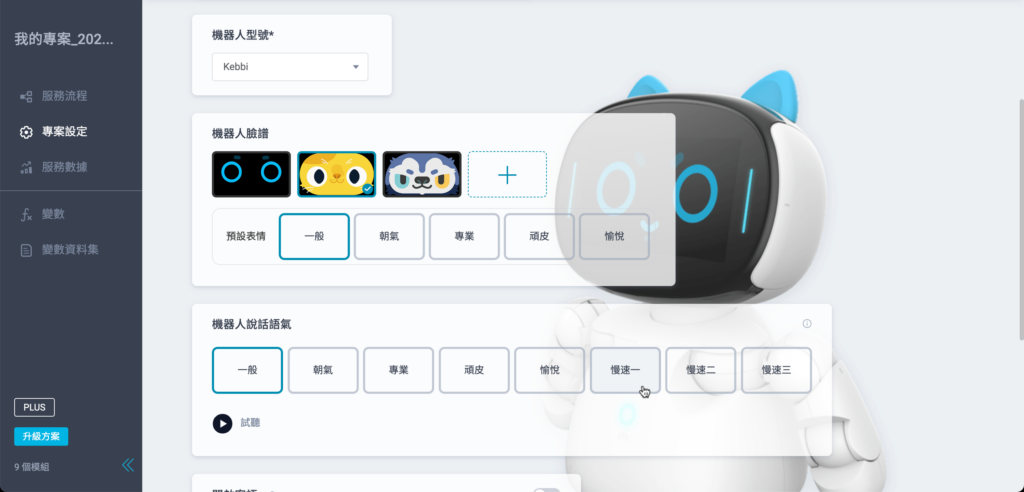 若需搭配機器人使用最新功能,請確認機器人版本已更新至對應版本( KebbiOS 12.2.1 或 ServiceOS 1.4.1 )。
