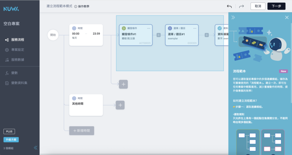 首波推出的擴充功能為「表單編輯器」,協助您在流程中設計自訂表單,並靈活應用於各種訪客互動情境: